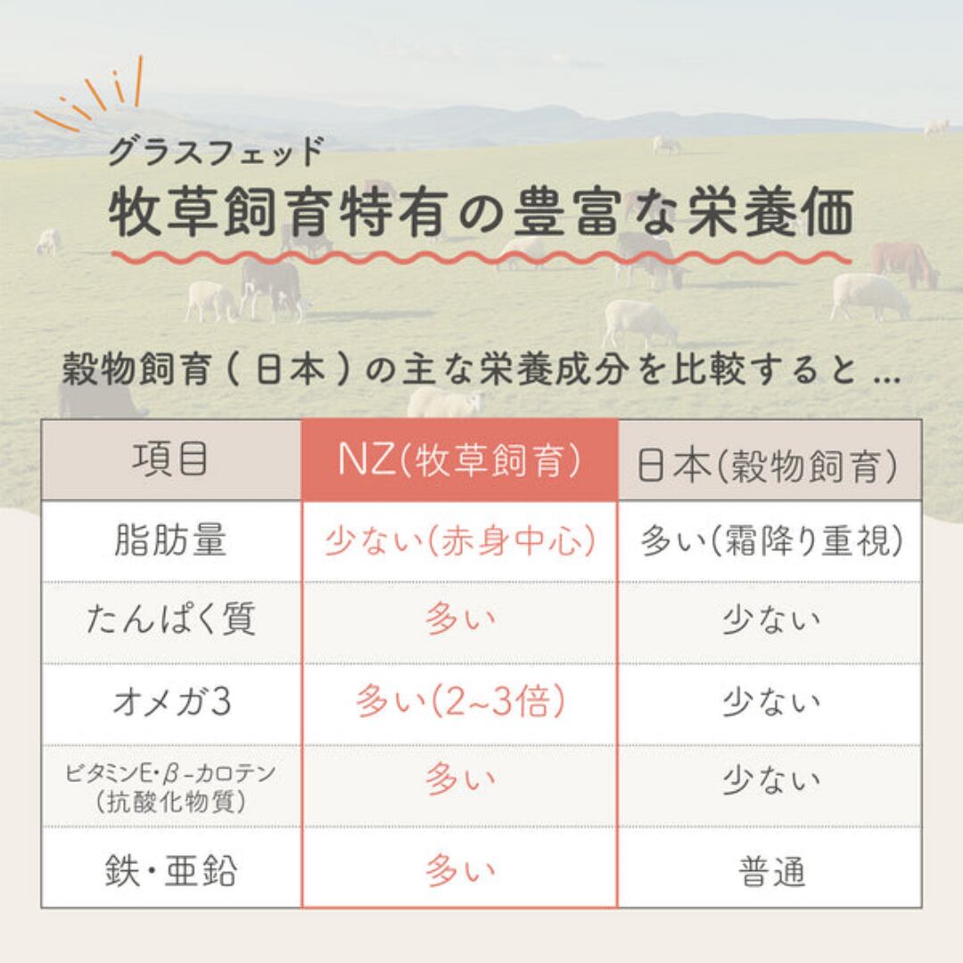 < ① 日本の穀物飼育肉に比べて消化が良くヘルシー >