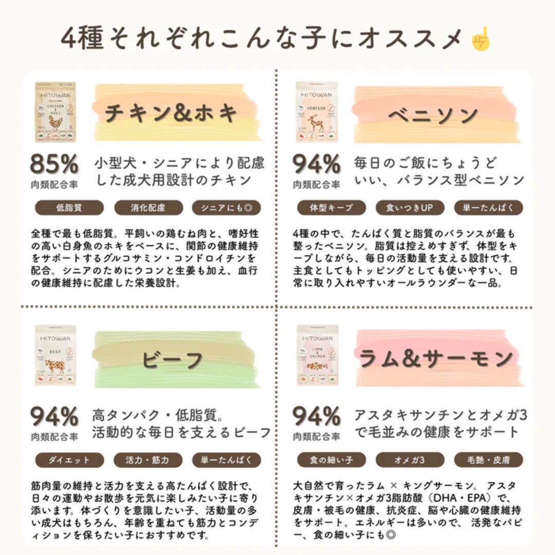 「シリーズ1番の低脂質。小型犬・シニアの体に寄り添う成犬ステージ設計のレシピ」
